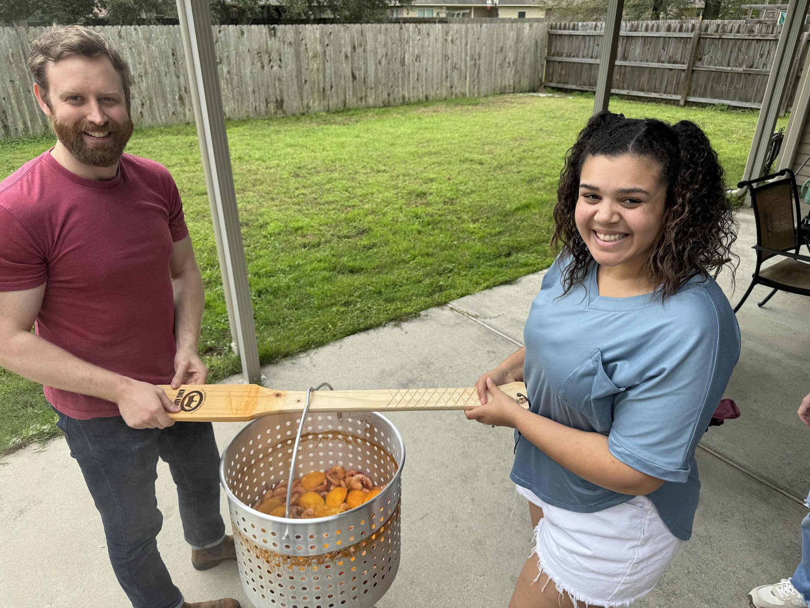 Fill your boiling pot about half full of water. Add your seasoning. Taste it. Should be salty. Add potatoes, onions, oranges and orange zest while waiting on water to come to a boil.