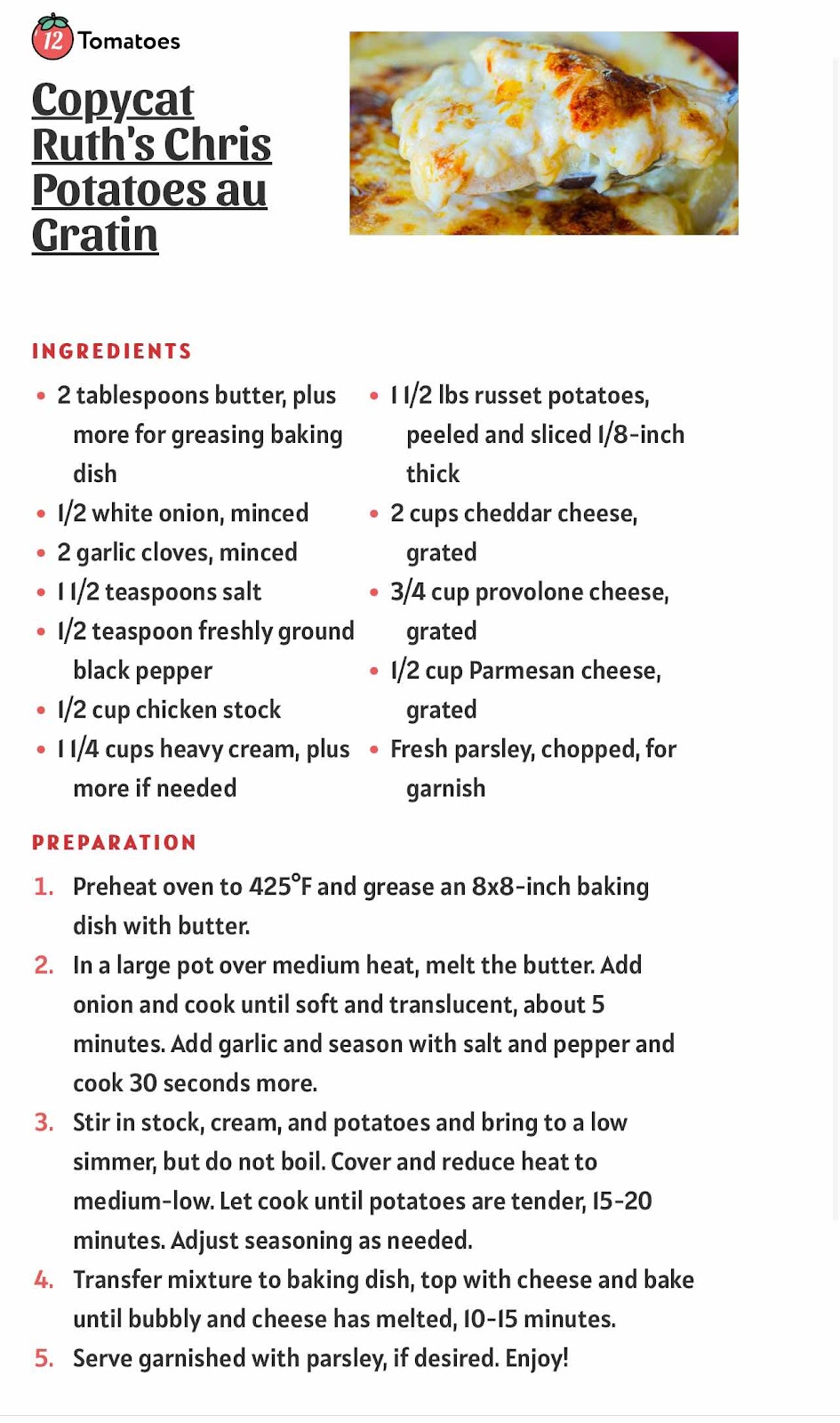 Copy Cat Ruth’s Chris Potatoes Au Gratin
